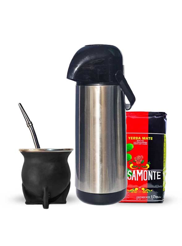 Kit para yerba mate con mate camionero, termo para mate termolar. Bombilla acero inoxidable, yerba mate argentina rosamonte. Incluye cepillo limpiador bombillas.
